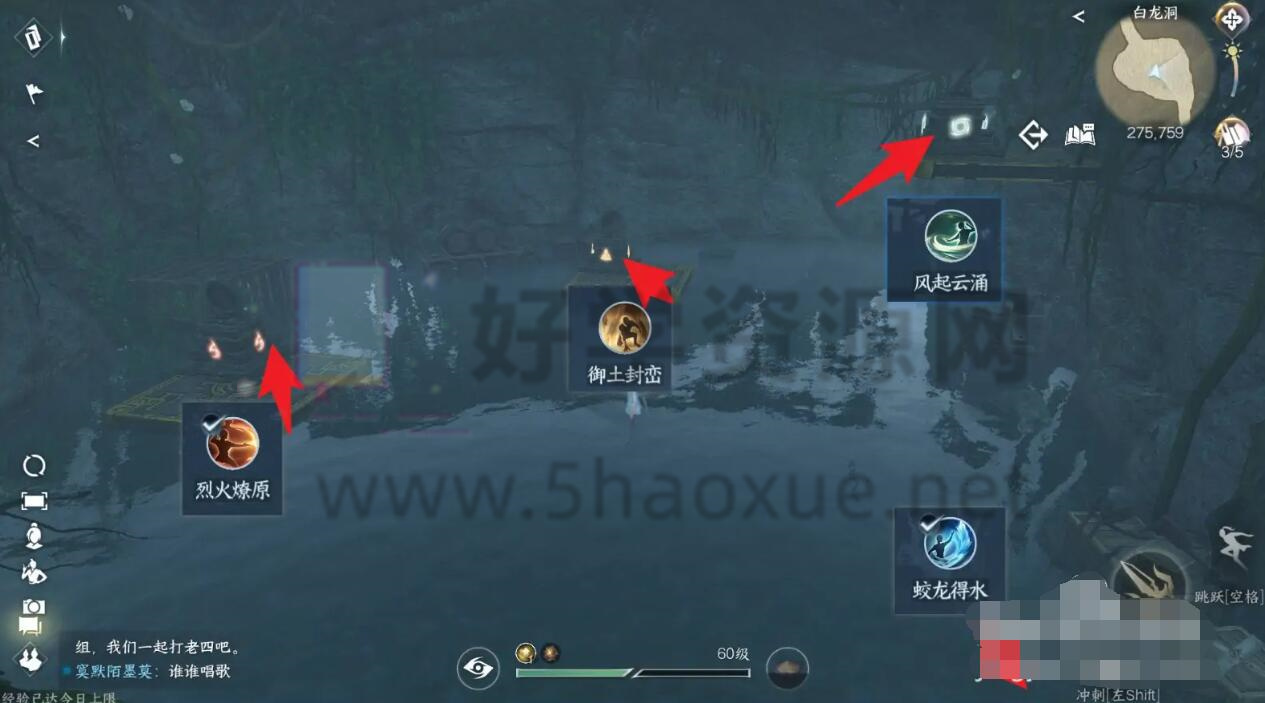 5.最后,我们看到一个宝箱。对四个日晷使用以下技能:焚火、封地、龙得水、风云,即可打开宝箱并获得奖励。