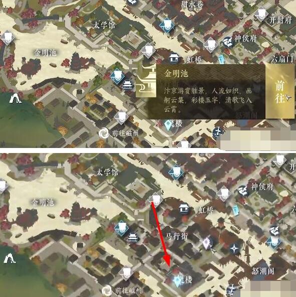 9.然后完成拾取任务,前往汴京沟兰瓦斯等待【谈琴】。对话结束后,跟随门卫带您进入璎珞楼。