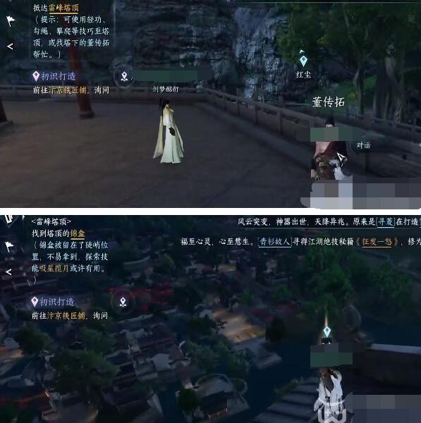 5、按照剧情领取任务【到达雷峰塔顶】,找到雷峰塔顶的锦盒,获得第二封信。