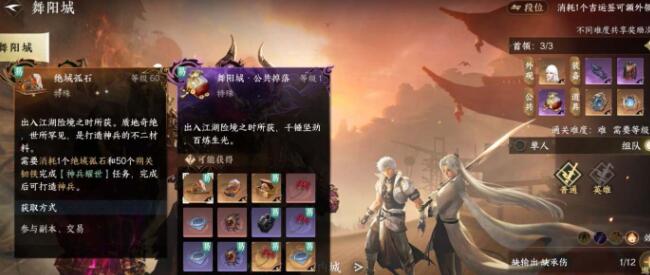1、首先参与63级团基地舞阳城,获得舞阳城公共掉落大礼包。打开后,将有几率获得绝孤石,并触发神器冒险。