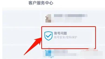 2、然后进入客户服务中心界面,点击账户问题选项如图。