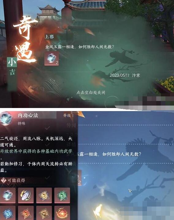 4.最后,等待一段时间后,冒险任务就会显示完成,我们可以获得任务奖励内功和心技。