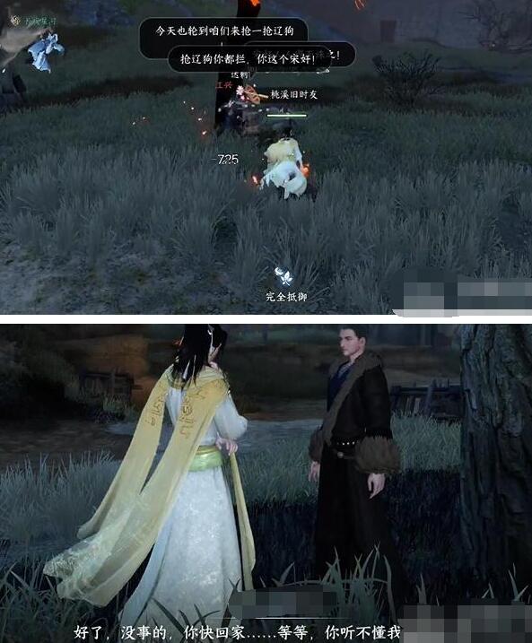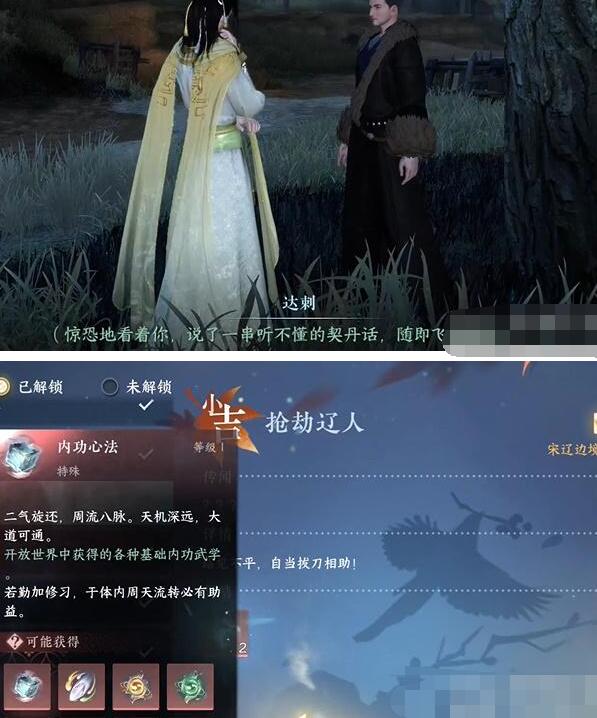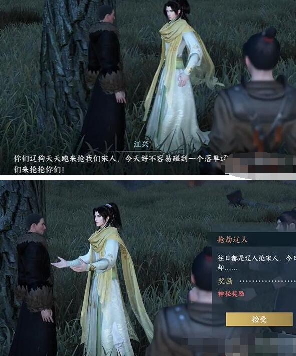 2.然后在一旁观看他们的谈话,触发需要保护辽人的任务提示。