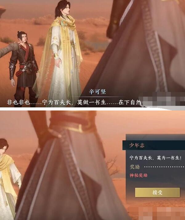 4、最后选择鼓励辛克俭,坚定他参军报国的信念。完成对话并完成冒险任务即可获得奖励。