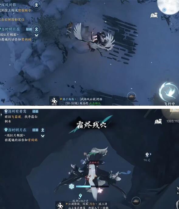 1、首先我们前往沧州坐标(1083、1108),进入残霜洞。