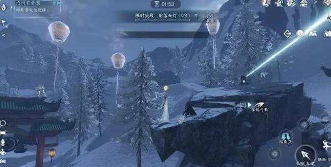 7.完成后,拿起旁边的弓箭,射出空中的孔明灯。射中所有箭头后即可通过游戏。