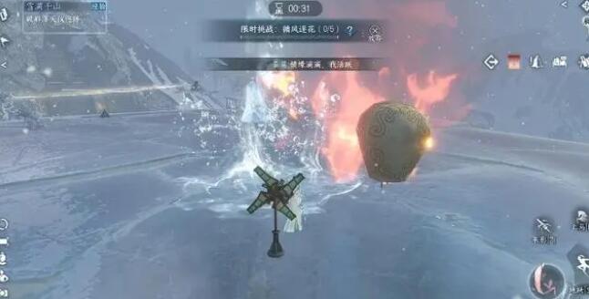 2.按照任务指引找到山上结冰的风车,使用火焰技能将其融化并使其旋转。