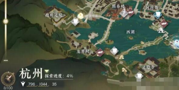 1、首先我们打开地图,找到杭州的坐标:796、1044。