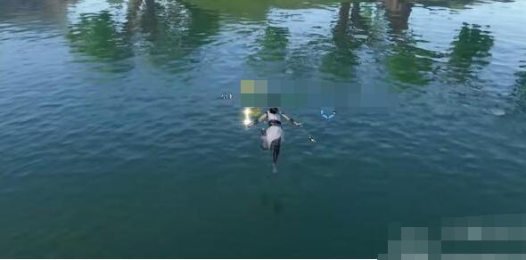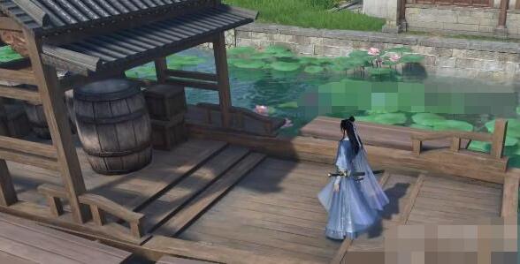 3、接到任务后,用气息查看周围情况,在水面上行走到湖中央的小船上。