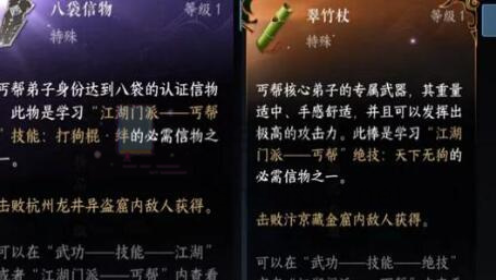 特殊技能令牌:汴京940802。进入藏金洞获得【青竹杖】。