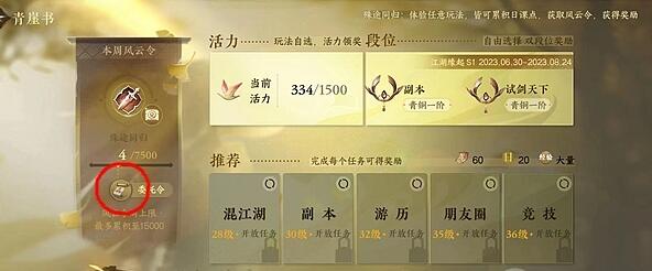 2、然后在青雅簿界面,如果本周风云订单达到2500,就可以点击领取委托订单。