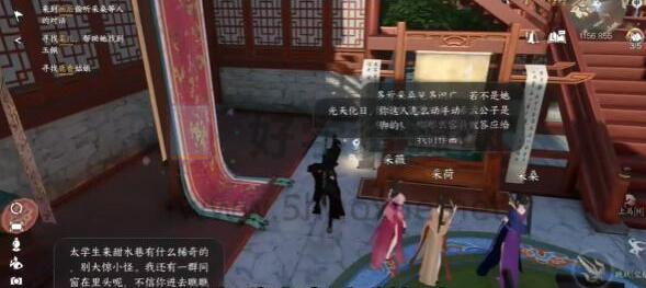 4.对话和修炼结束后,寻找如梦。如梦位于坐标位置:(1159,921)。互动结束后,需要播放乐谱并点击小花。