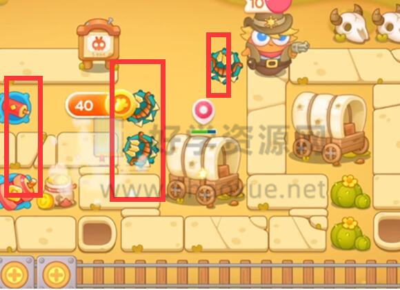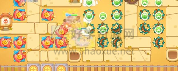 3、有金币的话就升级炮塔,鞭炮可以攻击左边的障碍物。