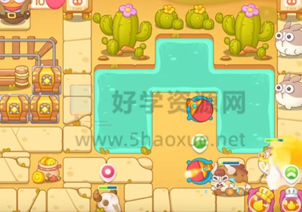 4、然后清除障碍物,在空旷的地方搭建炮塔,锁定兔子进行攻击。