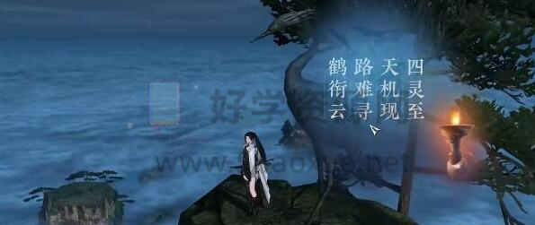 2、与仙鹤雕像交谈后,得到4条线索:《四灵经》、《天机》、《难寻》、《鹤向云》。