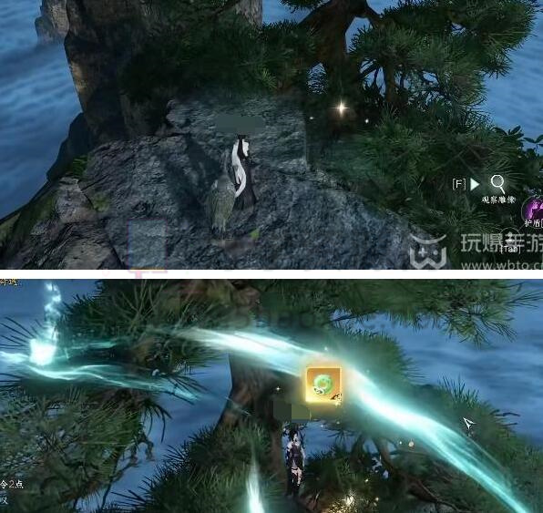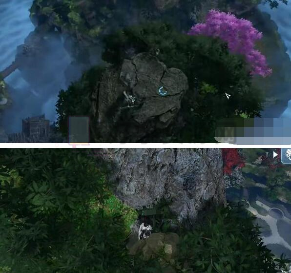 5.裂土:前往坐标【1211.802】找到第三座雕像,从山顶跳下来找到如图所示的石头,使用技能将其摧毁。