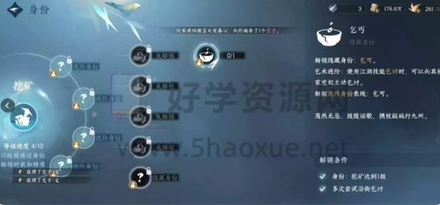 3、然后只要乞讨成功一次,就可以在身份与挖矿一栏解锁隐藏身份的乞丐。