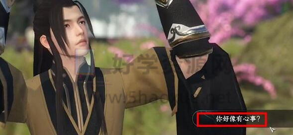 1.首先,我们前往坐标桃溪村[935, 1119],与NPC晁白对话,询问他在叹息什么。