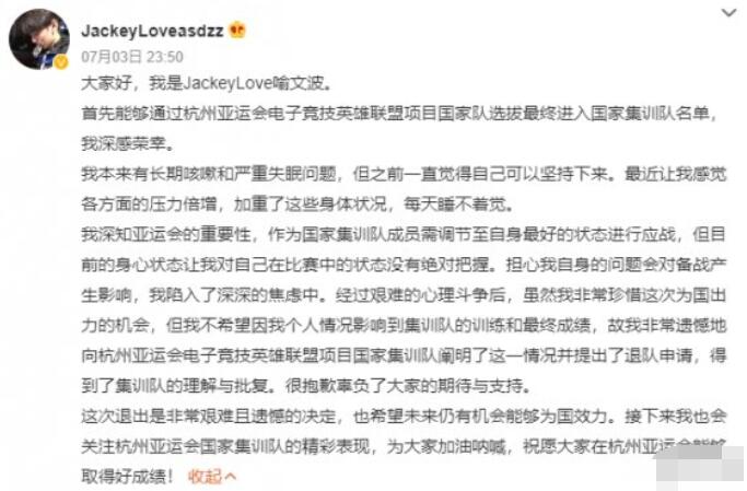 JackeyLove退出亚运会名单,相信大家对于这个意外情况还没有意识到,所以今天小编就为大家带来JackeyLove退出2023年亚运会的官方名单介绍,一起来了解一下吧。