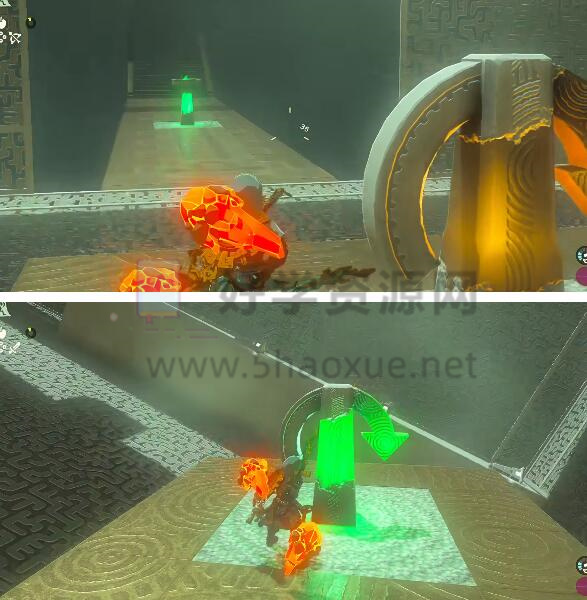 6、然后我们再次启动开关,用弓箭射桥中间的开关,等待平台转动来启动开关3次。