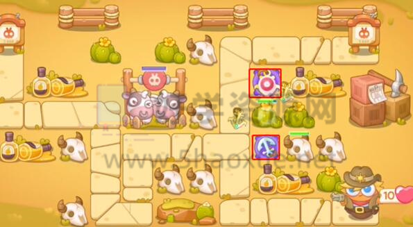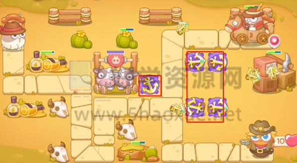 3.然后锁定进攻牛棚,直到其变成蓝色。由于进攻牛棚,左侧的障碍全部清除。一旦牛棚变成蓝色,就会帮助我们。