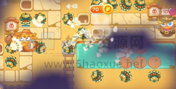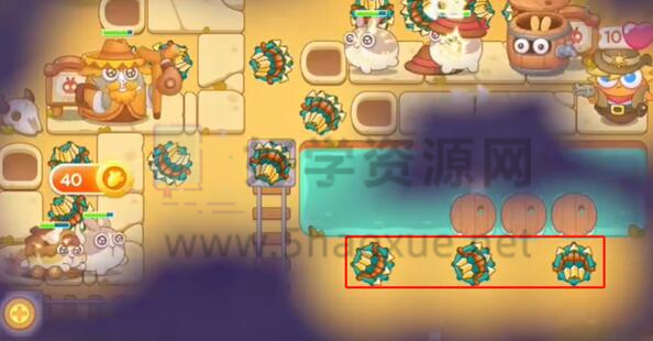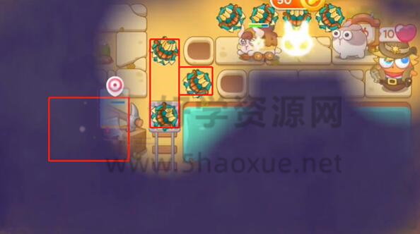 5.清除大箱子后,继续建造炮塔,击倒水池中的障碍物,并确保清除所有道具。