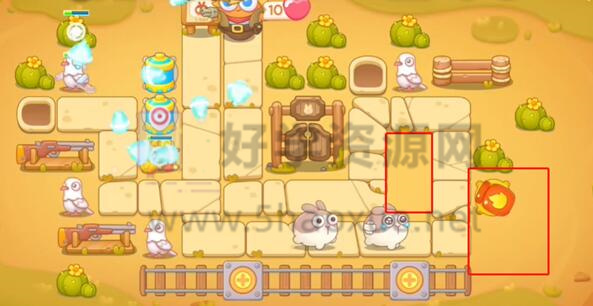 2.升级火瓶并清除障碍后,在出口处建造更多电池以同时清除兔子和障碍物。