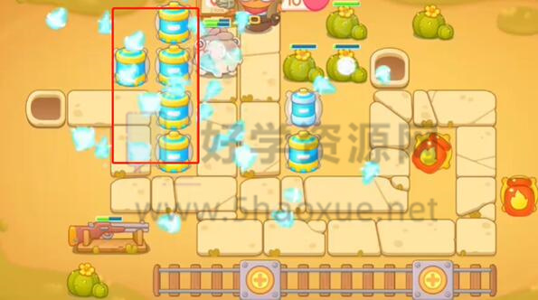 3.然后如果有钱的话,继续制造更多的电池。左边是电池,右边是火瓶。随意清除剩余的障碍。