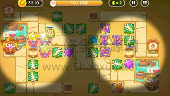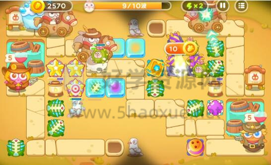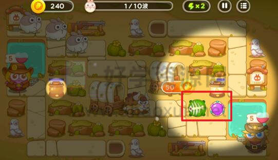 6.然后到了第九波,所有道具都会被清空,只需要升级炮塔即可。