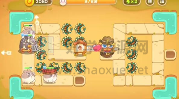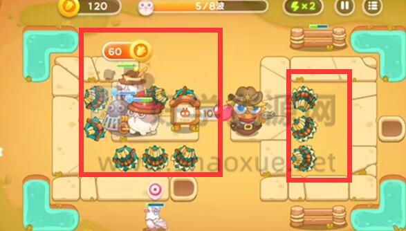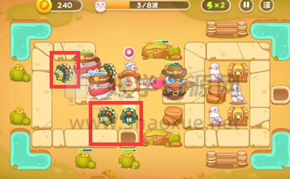 5、最后,当我们完成如图所示的炮塔的搭建和放置后,我们就可以轻松通过《保卫胡萝卜4:Boss很忙》的第二关了。