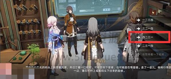 3. 然后选择问题的答案:四、二、三、一,并继续对话直至结束。