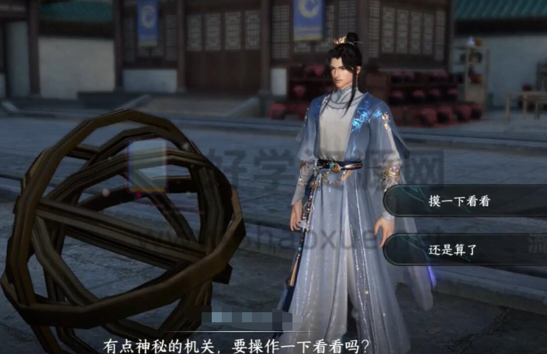2.然后你会在广场上看到一个类似于地球仪的黑色球体。激活它附近的物体并走到一边解决谜题。