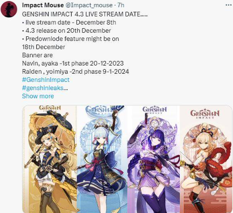 以上就是大家非常关心的原神4.3 卡池人物的详细介绍。想要抽奖的玩家一定要记得提前储备资源。更多精彩的游戏攻略尽在7ww。