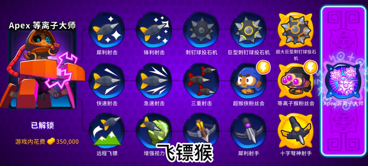 答案:飞镖猴、回旋镖猴、岛屿猴、飞机猴、法师猴、忍者猴、工程师猴
