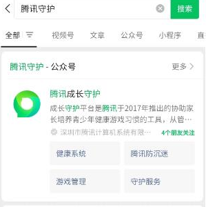 1.玩家打开微信搜索腾讯成长守护者公众号并进入公众号。