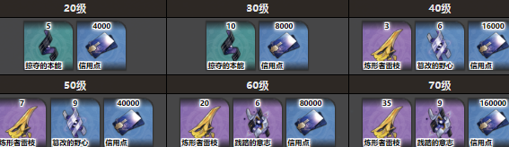 6、70级进阶:敏捷原核*9、信用点*160000、昔影雷冠*35
