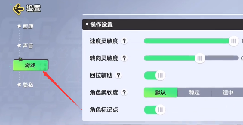 2.然后进入设置页面,点击左侧的【游戏】区域并向下滑动;