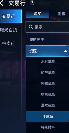 1.玩家点击游戏主界面的交易线,进入交易行界页面,找到特殊材料。