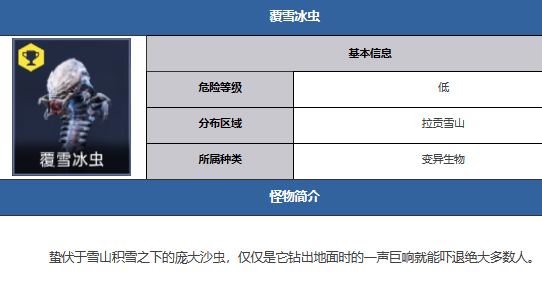2.该怪物出现率很高,玩家在拉贡雪山任何地方都可以遇到它。