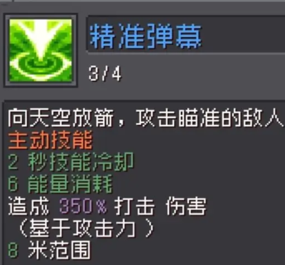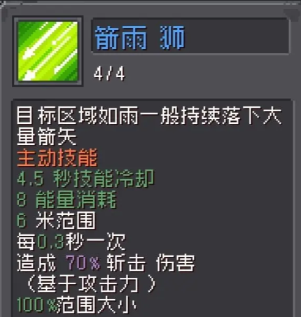 2.该技能消耗能量少,冷却时间短。是箭雨的主要输出技能。