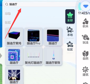 5、制作完成后,继续寻找音响和舞台灯光模块,导入传送门,完成迪斯科舞厅。