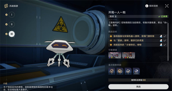 在星穹铁道开局一人一狗攻略大全中,我们可以看到如何完成任务的三个挑战【从一人一狗开始】。我们需要命令佩佩寻找奇怪物体的线索。接下来是小编为玩家们准备的指南,让玩家在任务开始时获得全额奖励,一人一狗。感兴趣的玩家快来看看吧!