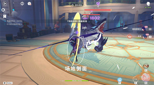 5.在场上,使用香灵QE,然后切换到普通QE,开启“特殊光效”,使用重击输出大怪。遵循这个循环来击败敌人。