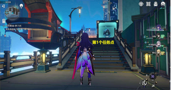 1、首先找到【夕颜老师】对话,进入副本,进入第一个场景,有3个任务点;