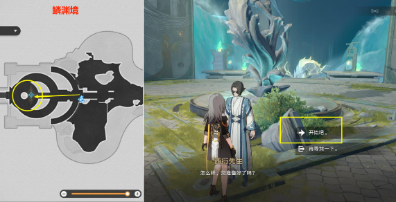2、前往下图任务点,对话结束。打开第二个对话框,选择【开始】进入副本;