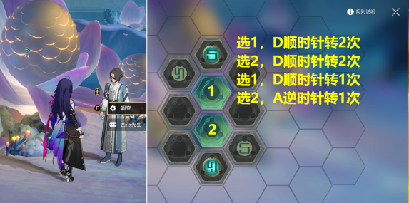 5、最后按照任务指引,前往下图位置,按照下图解决谜题,再打一波怪物进入副本对话,任务结束。