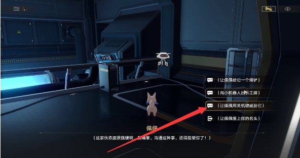 2、在【一人一狗起步:难度三】中,与小机器人互动,选择最后一个选项,获得成就【狗大战人】;