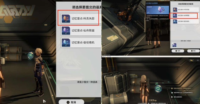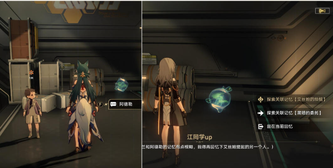9.传送到下图位置,与右侧【艾伦】对话,选择第一个提交道具,与左侧【阿德勒】对话,选择第二个提交道具,与【记忆泡泡】互动发送;