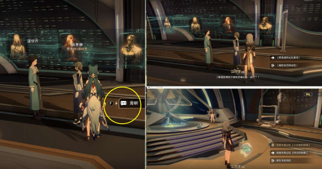 7.传送到下图位置,到达两个角色旁边聆听,选择第一个选项与【记忆泡泡】互动进行传送;