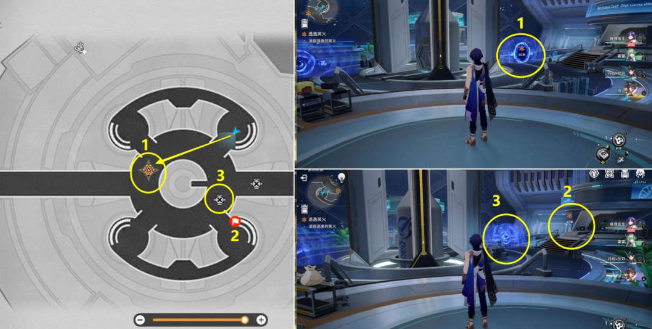 20、进入防吐,传送到下图任务点1的传送门,然后去任务点2追踪【暗火】,最后进入任务点3到达传送门;